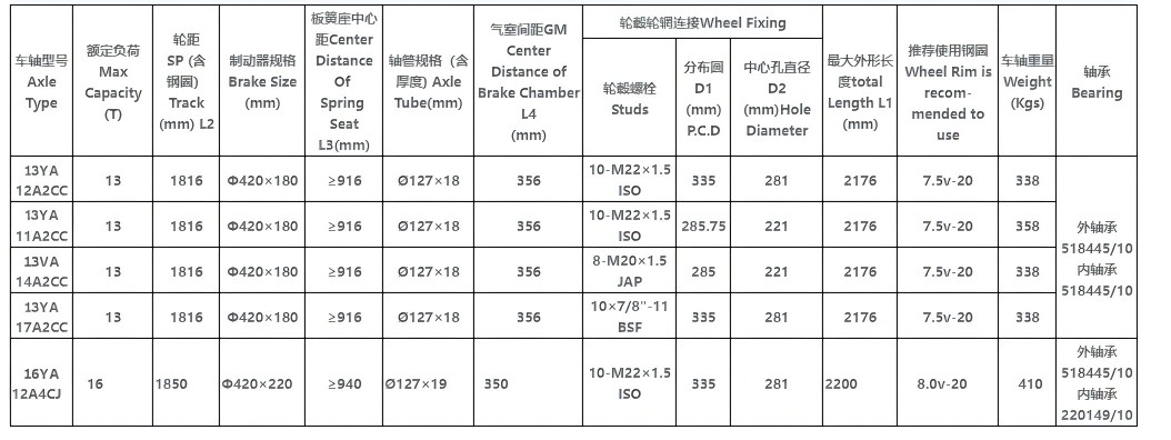 To je standardna 13T ameriška os. Z optimiziranim dizajnom doseže lahka brez žrtvovanja moči in zmanjšuje lastno težo. Standardna 13T osi tehta le 330 kg. Je močan in trpežen, izboljšuje celotne mehanske lastnosti osi in ima odlično odpornost na utrujenost in žilavost.